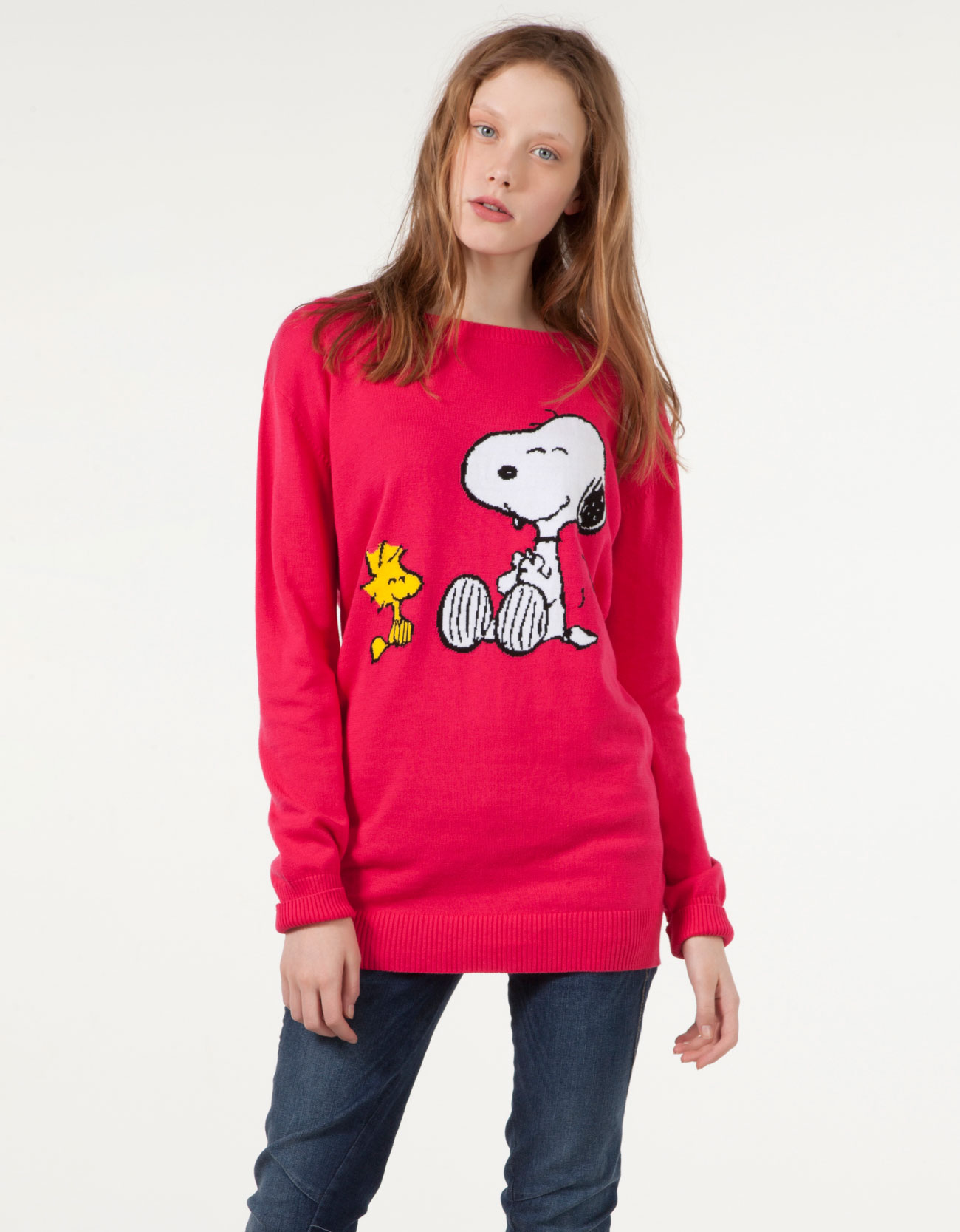En Bershka me compré este jersey de punto (el mío es en color blanco porque le voy a combinar mucho más que si fuera en rosa), lo vi precioso y para el invierno que se avecina viene de lujo!! Además pillé una promoción buenísima y es que de 22,90 € que valía el jersey te lo llevabas por 9.99€, como fan de Snoopy era una oferta que no me podía perder!!!jeje